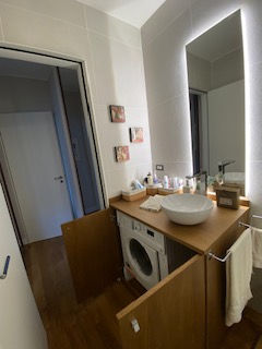 Ristrutturazione di un appartamento al Golf Club Monticello. Aprendo una finestra sulla cucina si ottiene un grande locale comunicante e conviviale con la sala. I bagni acquistano spazio rispetto alla disposizione precedente. L’utilizzo di grès materico a tutta parete ingrandisce lo spazio. L’utilizzo di led all’interno della doccia e sotto le mensole della nicchia della vasca da bagno creano profondità e “luce ambiente”.
